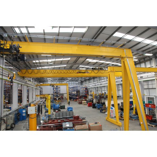 Bán cổng trục dầm đơn tải trọng 1 tấn đến 20 tấn. Khẩu độ bán cổng trục (khoảng cách tim ray di chuyển) lên đến 30m.